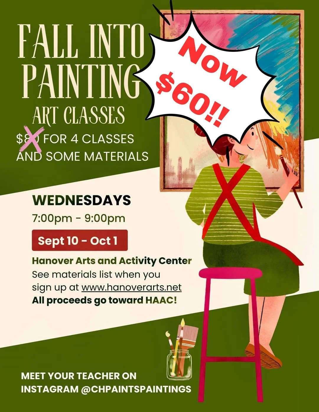$60 for 4 classes (materials not included, DM us for details!)